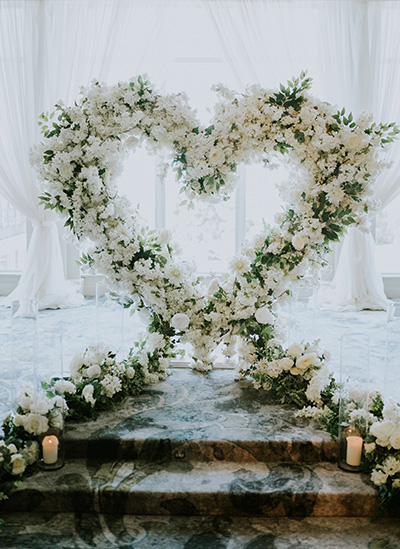 Our services cover a wide range of design elements, from floral arches and ceiling installations to draping and lighting. Transform your chosen reception venue with table centrepieces, linens, backdrops or statement staircase displays. Our team can create customised welcome signage, place settings and table plans for you and your guests.