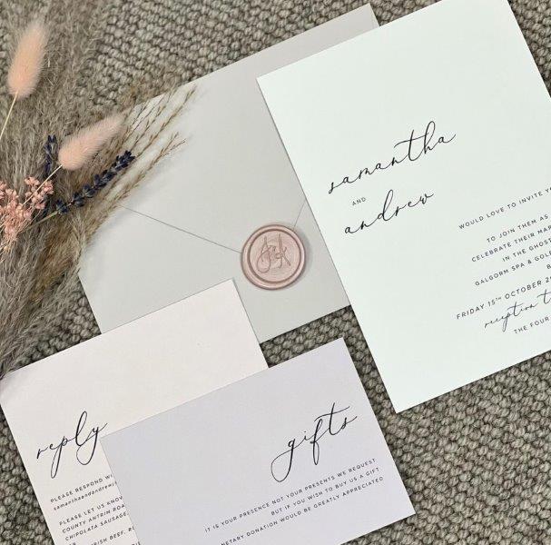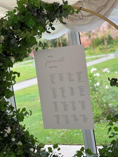We print all our stationery in house with the latest machinery so can create anything, from beautiful arch die cut table plans and other signage to elegant foiled invites!