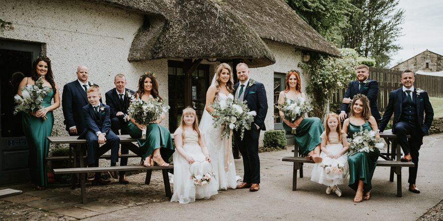Wanting plain bridesmaids dresses for sister Erin and friends Orlaith, Chloe and Aishling, Aisling ordered emerald green silk dresses from Silk Fred along with flower girl dresses from Next. Ricky and his groomsmen suits for brother Colin, friends Niall and Vinny along with cousin Stephen were from Tweedy Acheson.